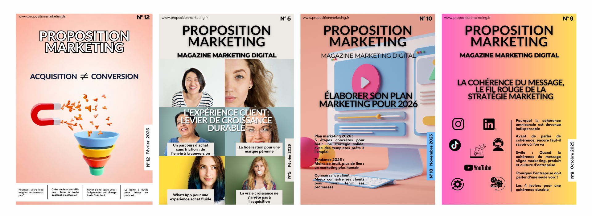 Ce magazine vous offre une vue complète sur le marketing : des interviews, des analyses des tendances, des recommandations de livres, des articles invités, des conseils et retours d'expérience.